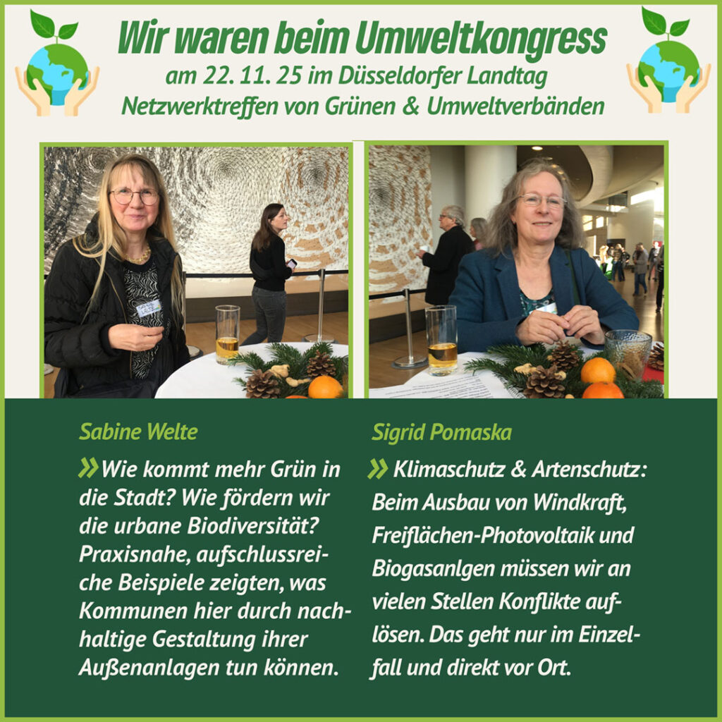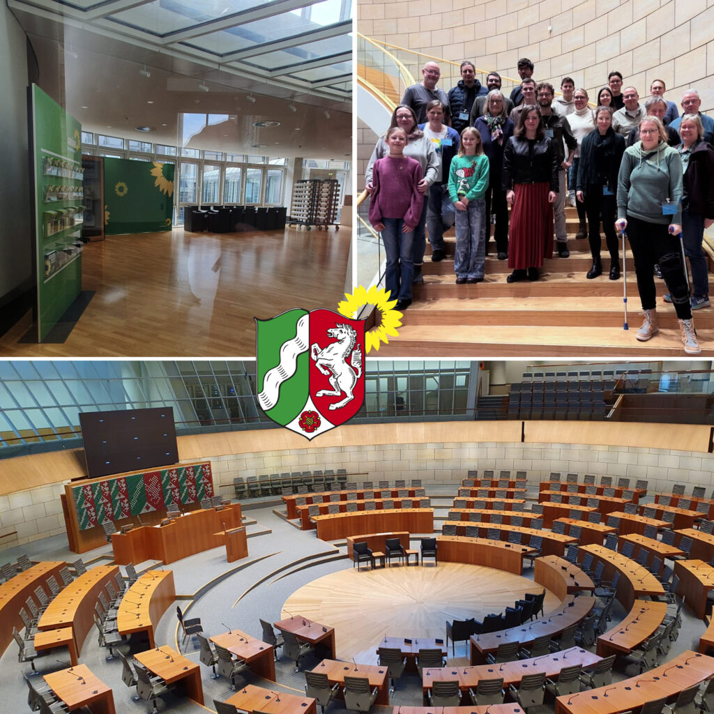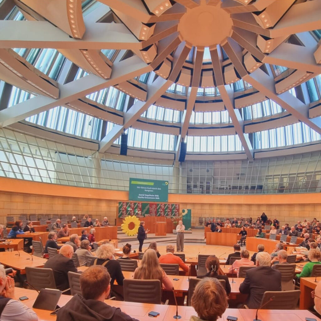 22. November 2025 | Wir waren zu zweit aus unserer Fraktion beim Grünen Umweltkongress 2025 im Düsseldorfer Landtag dabei – und schon die Location war ein echtes Highlight. Das beeindruckende Rundgebäude einmal von innen zu erleben, inklusive Sitzplätzen direkt auf der Regierungsbank, war etwas Besonderes. Jeder Platz mit Namensschild, alles sehr offiziell – aber trotzdem mit einer angenehm offenen Atmosphäre, nicht zuletzt dank der gläsernen Kuppel.