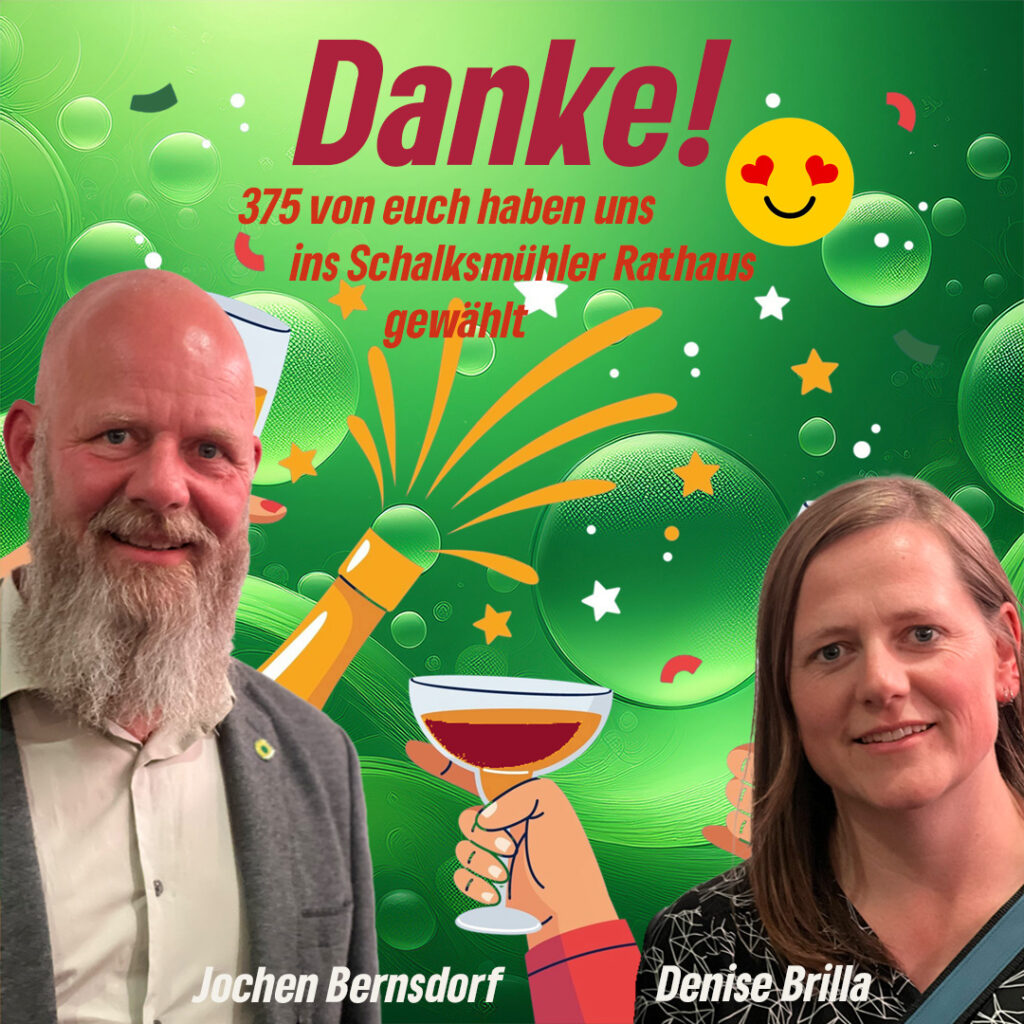 Die Zusammensetzung des Gemeinderats in Schalksmühle hat sich neu geordnet. Wir freuen uns über das Vertrauen, das uns entgegengebracht wurde, und nehmen unsere neue Rolle als Grüne Fraktion mit Respekt und Tatkraft an.